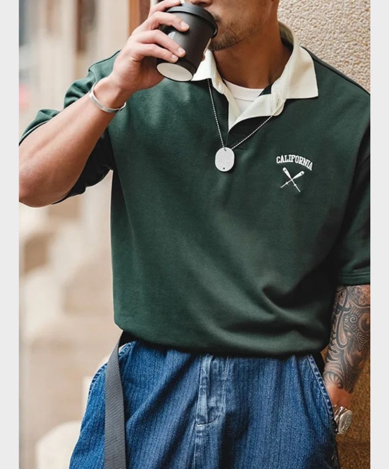 Coupe décontractée et riche teinte vert forêt — parfait avec un short ou un pantalon en lin.