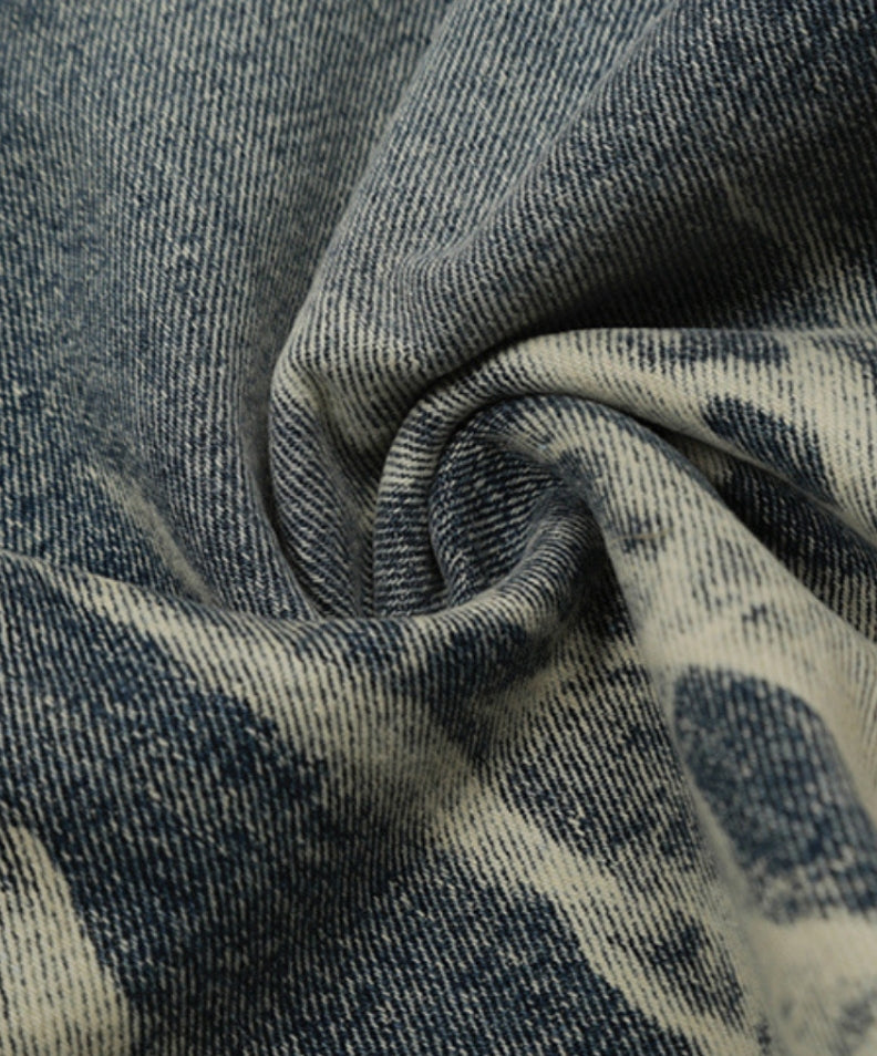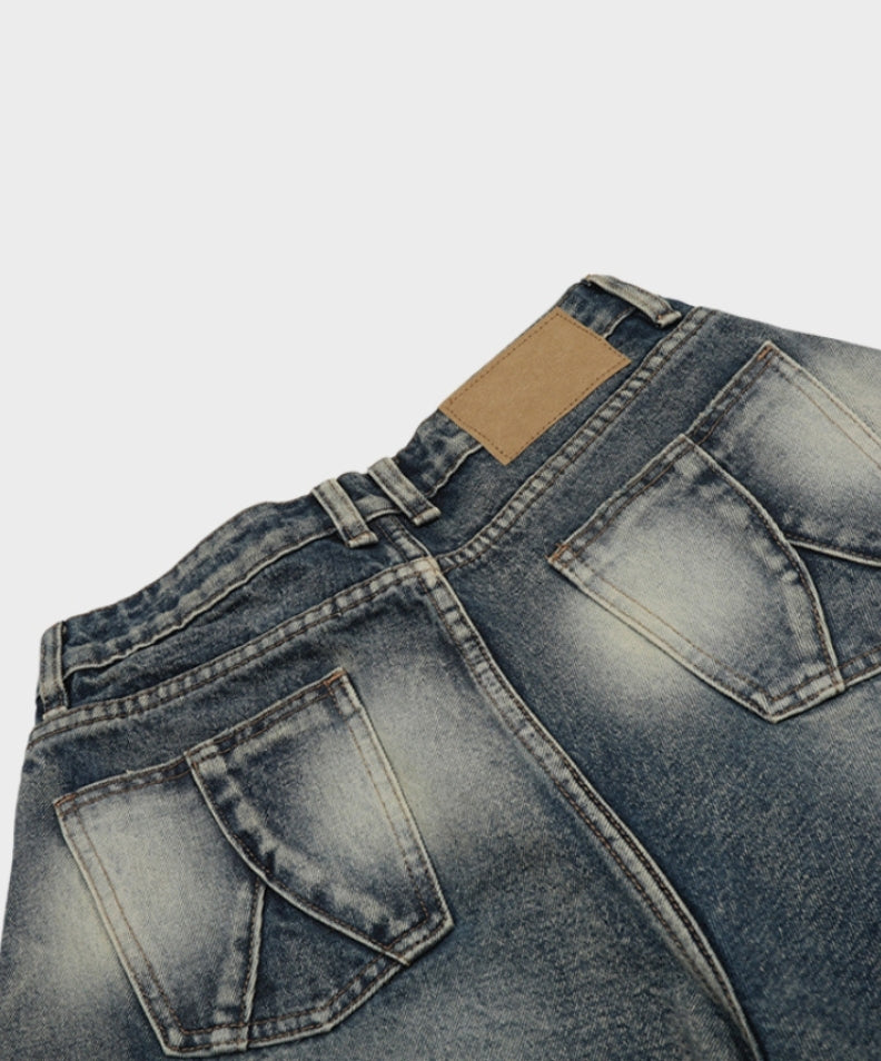 Le denim délavé et vieilli évoque un caractère robuste et usé.