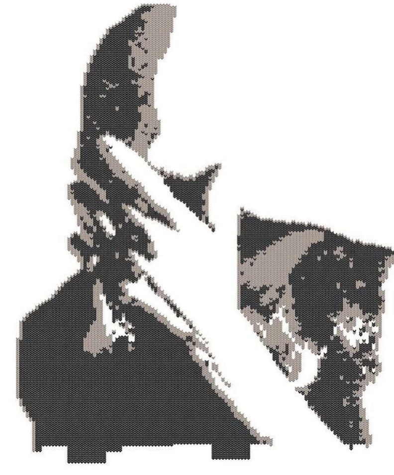 Le graphisme saisissant sur la moitié du visage crée un effet audacieux.